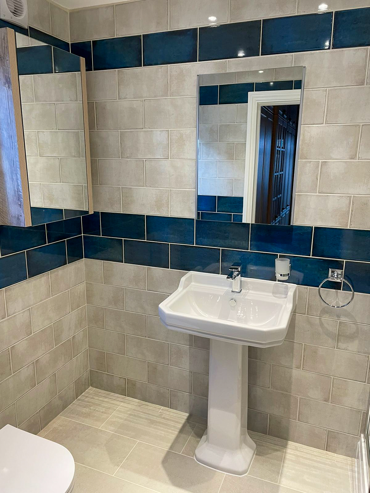Explore the full transformation of two bathrooms in Pettswood near Chislehurst with BVAS Builders. Meticulously chosen flooring and units create a cohesive and stylish ambiance in both spaces. Our dedication to excellence is evident in every detail, ensuring that both bathrooms exude sophistication and functionality.